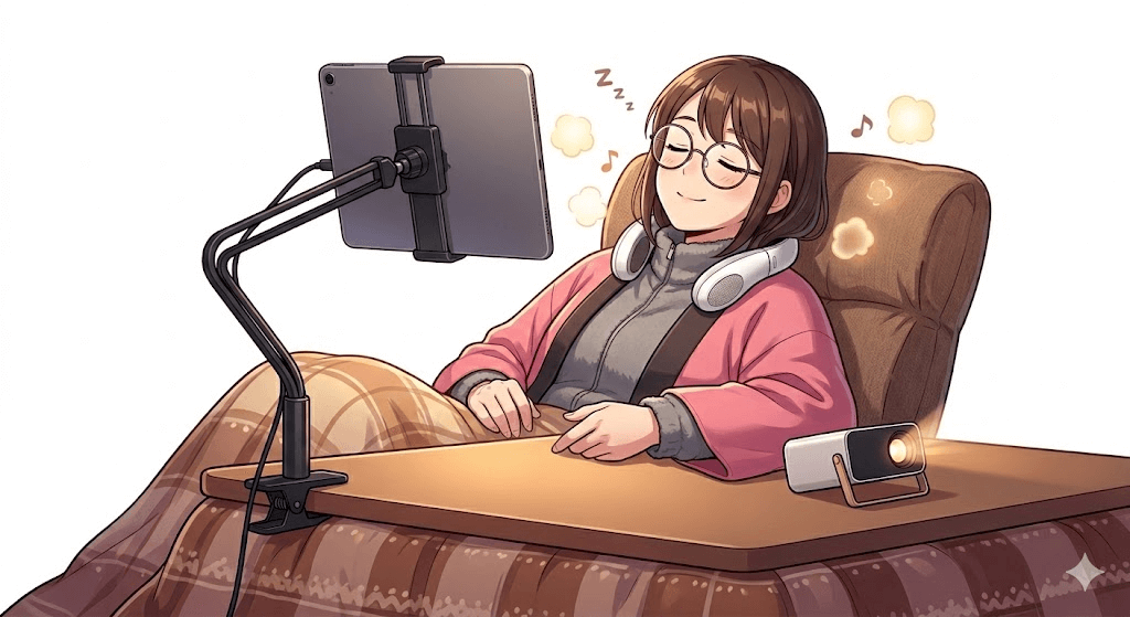 今夜のテーマは、「完全なる廃人」。 一週間頑張った自分へのご褒美に、こたつから一歩も出ずに、指先ひとつ動かさずにエンタメを浴び尽くす。そんな「自堕落の極み」を実現するための神ガジェットをご紹介します!