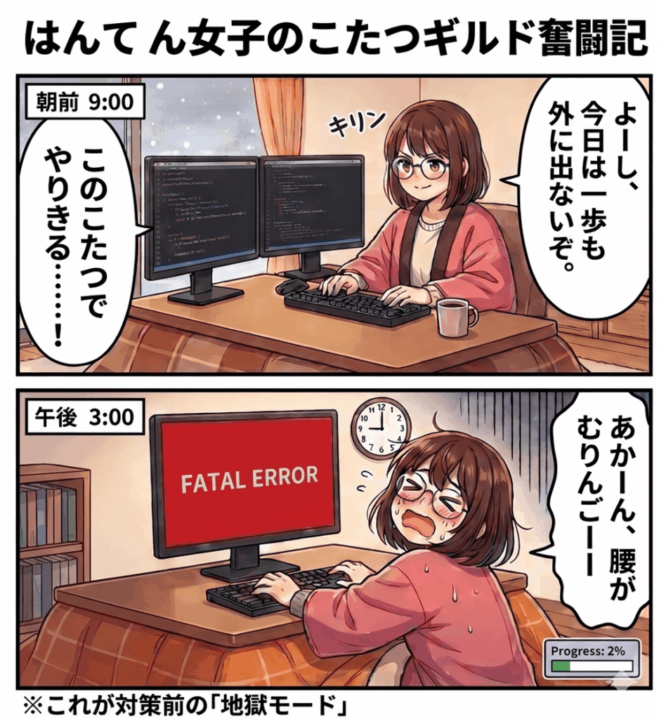 1. 導入:こたつの罠、それは「腰バキバキ」